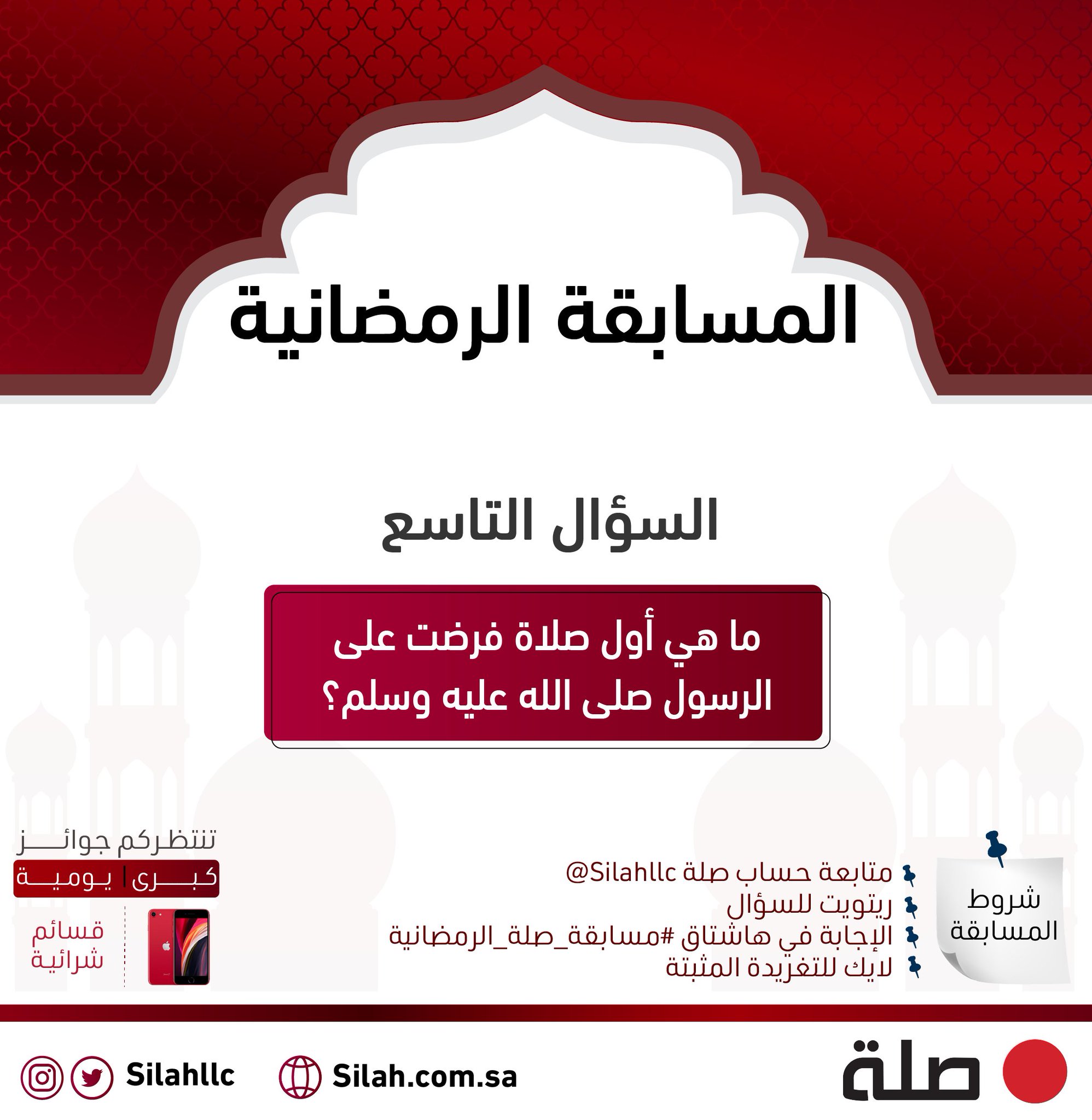 صلة On Twitter سؤالنا التاسع لـ مسابقة صلة الرمضانية ما هي أول صلاة ف رضت على الرسول صلى الله عليه وسلم اط لع على الشروط في الصورة السحب غدا عشوائيا من الهاشتاق الساعة ١٠ ٣٠