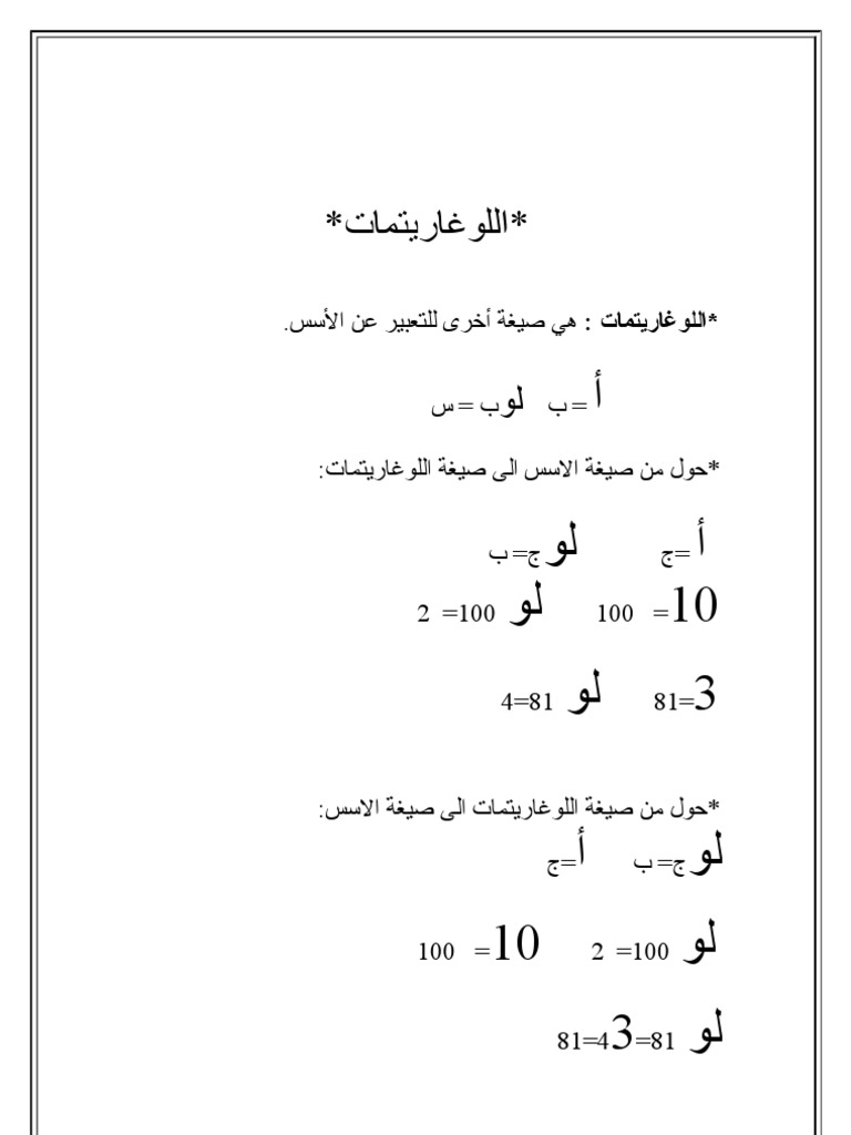 اللوغاريتمات للصف الخامس العلمي المنهج العراقي