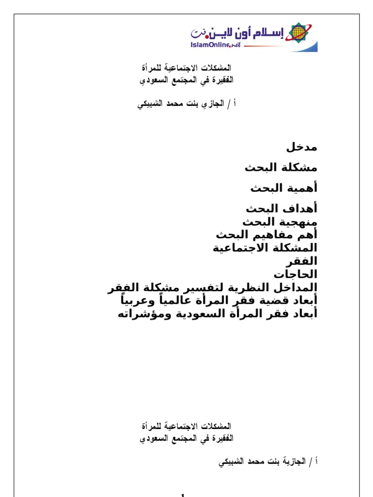 المشكلات الاجتماعية للمرأة الفقيرة فى المجتمع السعودى