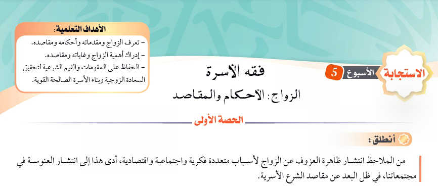 درس الزواج أحكامه و مقاصده دروس التربية الاسلامية الاولى باك وفق المنهاج الجديد